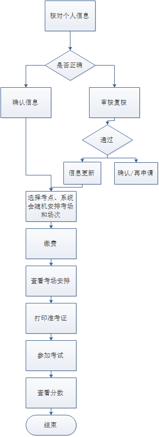 3.考生初次登录报名系统时,系统将自动显示考生的个人信息,考生应反复核对姓名、身份证号码等信息,确认无误后方可报名,否则将导致考试成绩无效。因考生本人错报、漏报造成无法参加考试或者考试成绩无效,由考生本人负责。