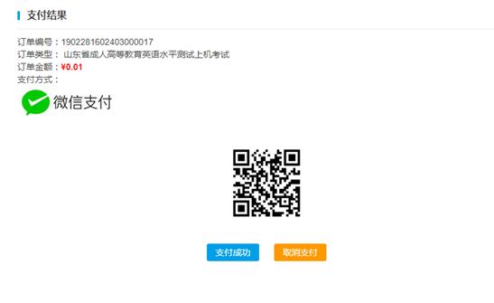 点击“确认报考次考点”后,进入订单页面,支持进行支付宝支付或者微信支付两种形式,可自由选择,当所选方式外边框标为蓝色,即为当前选中的缴费方式,点击“确定支付”,即进入支付页面。
