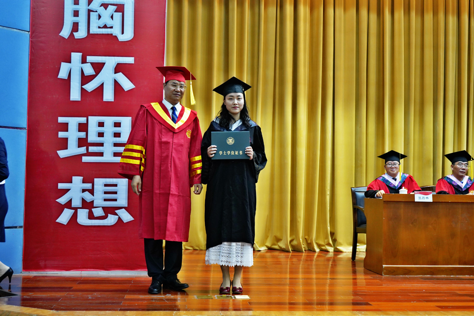 6月23日下午,学校在综合楼学术报告厅隆重举行2021届毕业典礼暨学士学位授予仪式。校领导曹胜强、李文喜、曾宪明、李目海、路绪剑、丰雷、安涛、孙正、张昌林、林勇出席典礼。