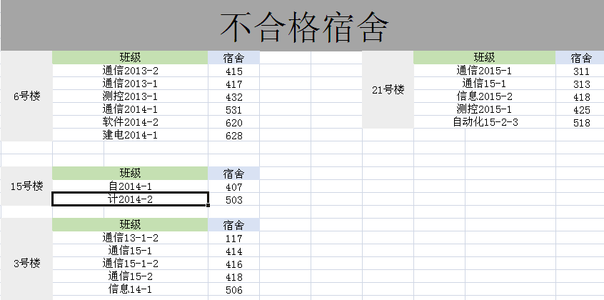 以下为第十三周宿舍卫生检查结果,如有疑议请于本周四(6月2日)之前来逸夫楼D206咨询。