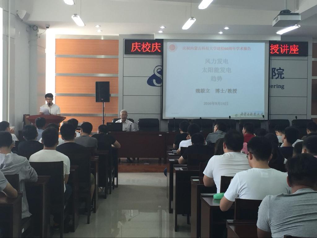 为庆祝我校建校60周年,9月14日下午15:00,taptap邀请魏毅立讲授为学院电气专业老师和同学们进行讲座,讲座内容为“风力发电和太阳能发电”。讲座持续两个小时,魏教授的精彩讲座不断引起同学们的掌声。