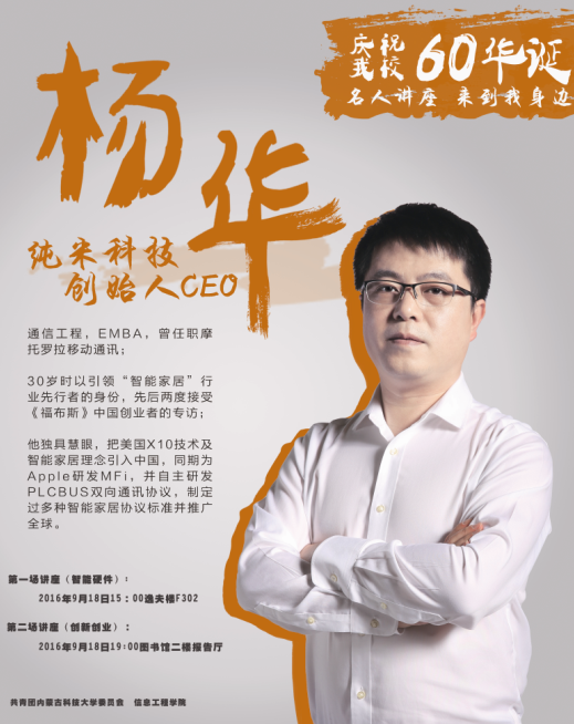 庆祝建校60周年,taptap邀请杨华董事长于9月18日下午15:00和19:00,分别于逸夫楼d302和图书馆报告厅,为热爱科技创新的同学们进行了两场讲座。每场讲座都持续两个半小时,讲座内容围绕“智能硬件”和“创新创业”展开,通过理论讲述与实践经验分享,为同学们带来一场创新创业路上的精彩盛宴。杨华董事长的精彩讲座得到同学们的热烈欢迎,会场不断传出阵阵掌声。通过互动环节同学们的提问,杨董事长表示,参加讲座的同学们提出的问题有深度,对智能硬件领域有很强的求知欲,希望你们能认真学习,不断钻研,在创新创业这条路上实现自己的梦想!