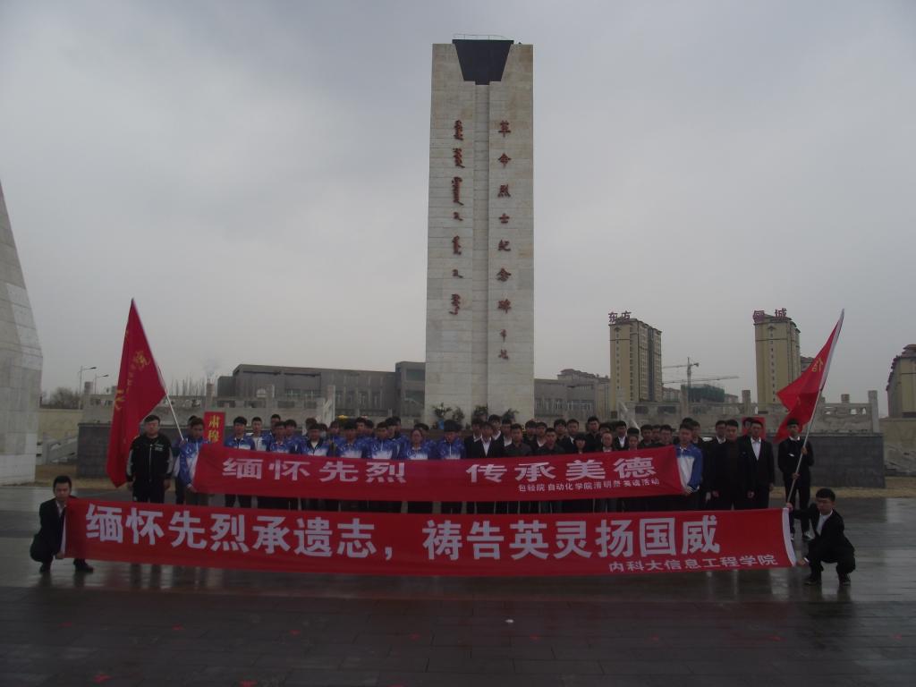 清明时节雨纷纷,路上行人欲断魂。细雨飘曳的2017年4月4日,为缅怀革命先烈,弘扬爱国情怀,信息工程学院团总支与包头轻工职业技术学院自动化学院联合行动,组织学生代表在井萍公园进行清明祭扫烈士陵园活动。