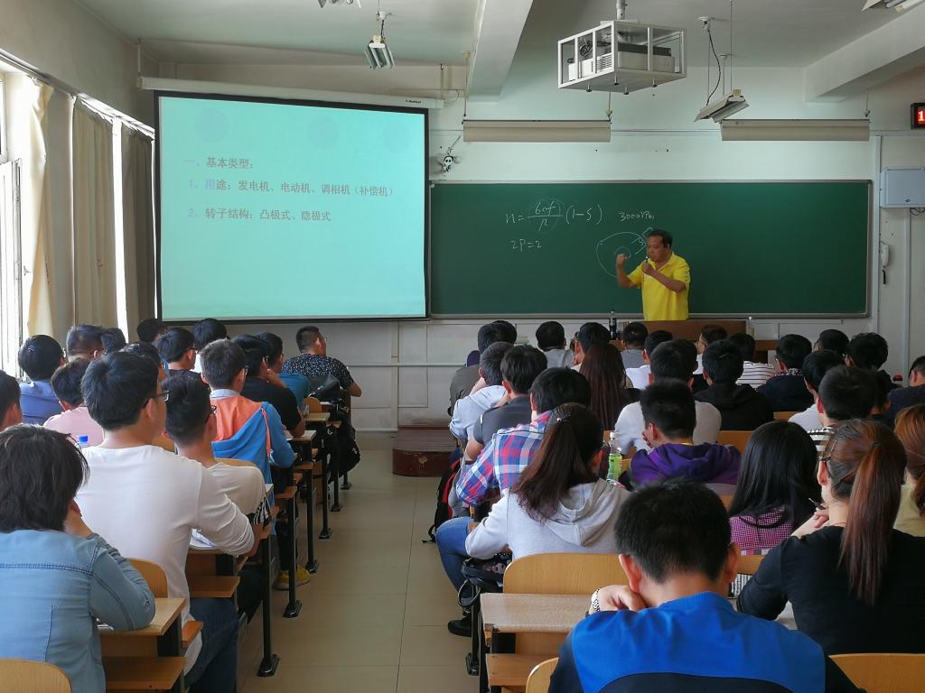 1、本次授课学生群体为电气2015级1,2班,出勤率为96%。观摩教师人数为31人。讲解内容为同步发电机。张老师深入浅出地分析了同步发电机的分类、构成部件、工作原理以及实际应用。以板书和图片的方式再现了同步发电机在或火电机组、水电机组以及风电机组的应用情况,让广大师生有身临其境之感觉,对于非本专业教师同样获益匪浅。