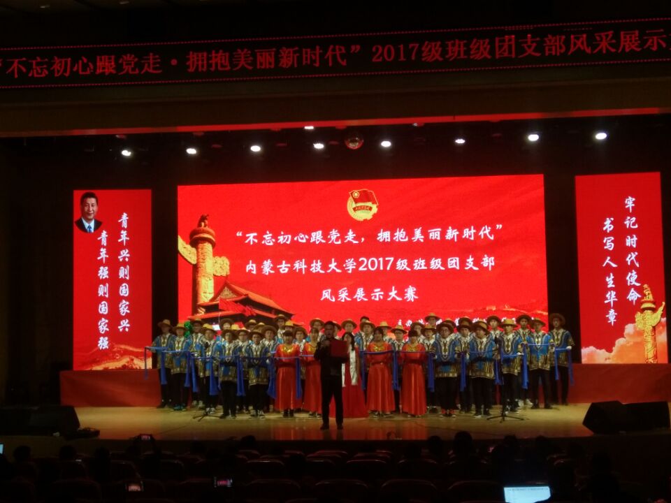 伴随着主持人热情洋溢的开场,本次比赛在全场观众热烈的欢呼声中正式拉开了帷幕。taptap的代表节目为杨文君老师所带领的电气专业新生合唱歌曲《美丽内蒙古》。音乐起,歌声亮。天苍苍野茫茫,山青青水泱泱,唱出了内蒙古的美丽风光;天地舞霓裳,山河醉芬芳,唱出了人们对美好生活的热爱与向往。taptap台下啦啦队“喜迎十九,胜利召开,信息信息,争创第一”的口号更是完美配合着台上动听的歌声,博得了现场阵阵热烈的掌声。最终,taptap凭借优秀的配合和动听的歌声夺得本次比赛的第二名。