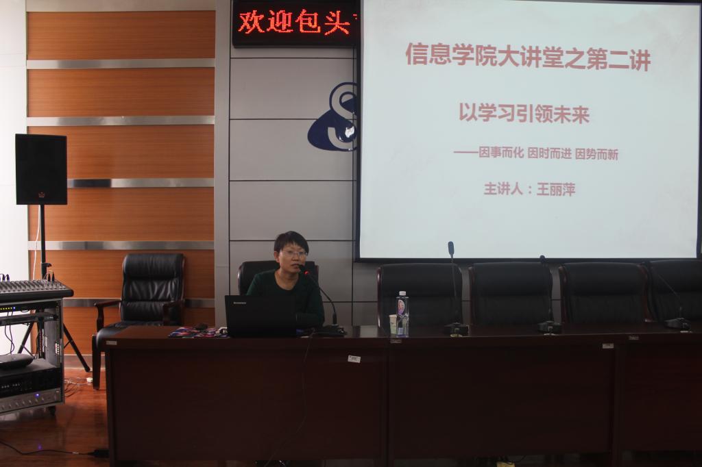 2018年5月11日下午15时30分,信息工程学院大讲堂第二期在逸夫楼f302正式开讲。taptap特别邀请包头市首批思政名师、包头钢铁职业技术学院社科系主任王丽萍教授讲授了题为《学习引领未来——因事而化、因时而进、因势而新》的专题党课,taptap党总支书记崔桂梅、学院院长李宝山及全体教工党员、学生党员聆听了讲座。