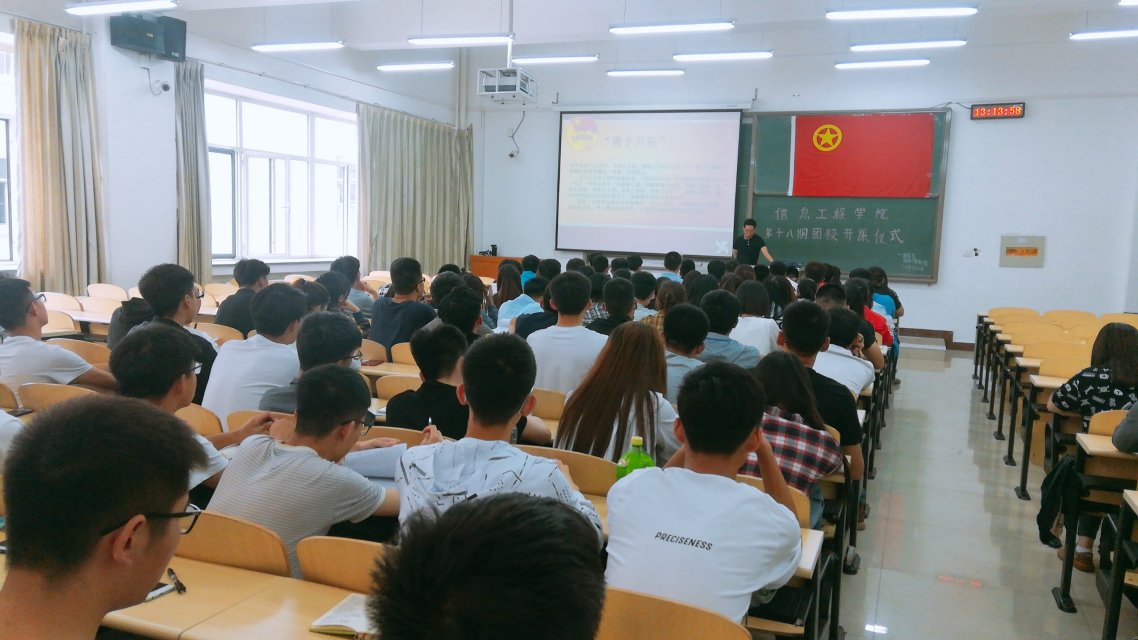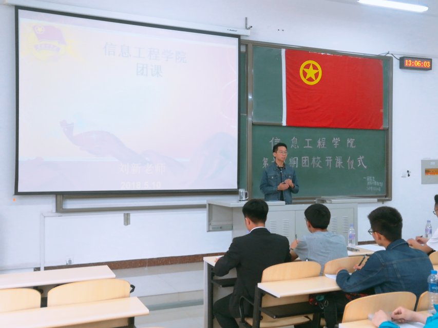 为了进一步加强团员的政治思想观念,增强团员对团组织的深刻认识,2018年5月10日中午12:40,由taptap团总支团务与素教部主办的信息工程学院第十八期团课开课仪式暨第一次团课在逸夫楼G204举行,信息工程学院团总支书记刘新老师以及18期团课学员全部到场。