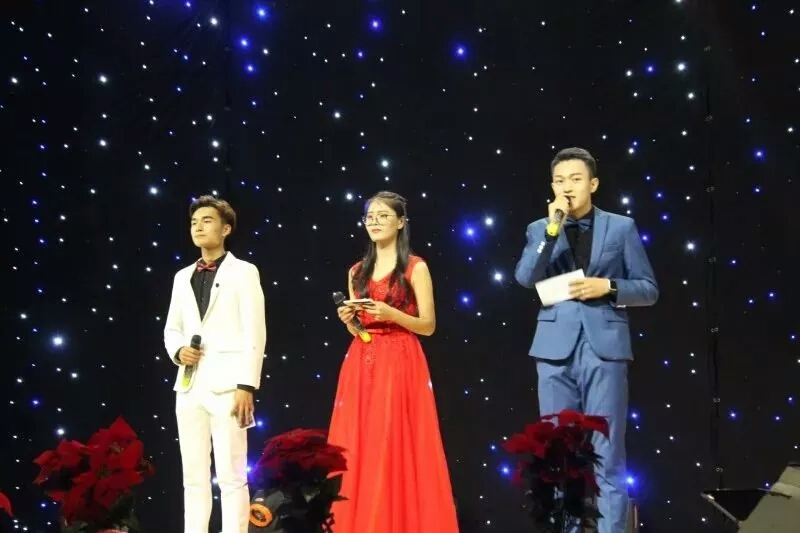 在晚会的开始,我们一起观看了来自祖国首都的声音——共青团十八大。聆听完习近平总书记的教诲,拾光乐队通过美妙的歌曲《找自己》把我们带入晚会的第一篇章——友情燃烧的岁月。希望通过歌曲向我们传递出勇于活出自己的信念。现场的气氛活跃了起来,接下来就是让人期待已久的节目,由大四学长王鑫鹏和刘新老师演唱的《栀子花开》,勾起在场所有人深深的记忆。在欢声笑语的小品中,我们进入了现场互动环节,在现场互动环节,为幸运的观众赠送了精美的小礼品。