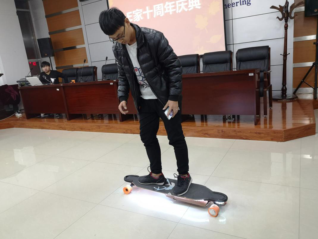 主持人简短的开场后,社团现任社长张慧兵上台发言,向大家介绍了E家科技园十周年的发展历程以及取得的各种成绩,他表示今后会带领全体成员一起努力,不断进步。随后的一段视频将所有人带回了十年前。十年间的一点一滴尽数呈现在在场所有人面前。十年的风雨兼程,他们即将分享的,是自己的累累硕果与点滴感悟;五载的春华秋实,他们即将见证的,是一个优秀社团从无到有,筚路蓝缕的壮阔篇章。见证了这十年的蜕变,郭宇老师上台对社团这十年的发展作了简单的总结,感谢所有老师和同学给予的帮助,并对社团今后的工作做了规划。