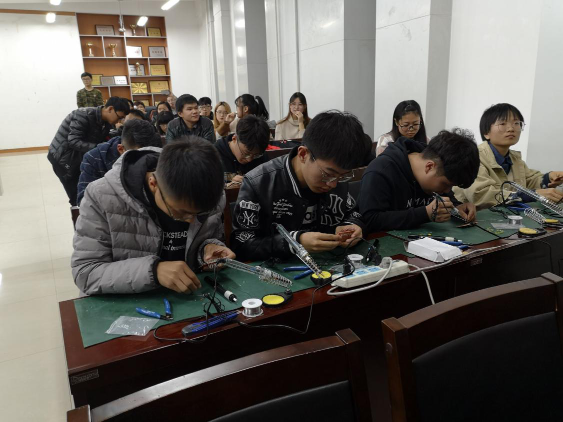 回首了过去,展望了未来,立足现在更加重要。社团成员一一上前为大家展示自己的科创成果,详细地讲述了其中的原理,充分展示了taptap科创社团的实力,得到了老师和同学们极大的赞赏。随后在大一年级几位同学之间展开的焊板比赛更是激动人心,吸引同学都忍不住上前观看,激烈的比赛赢得了阵阵掌声。