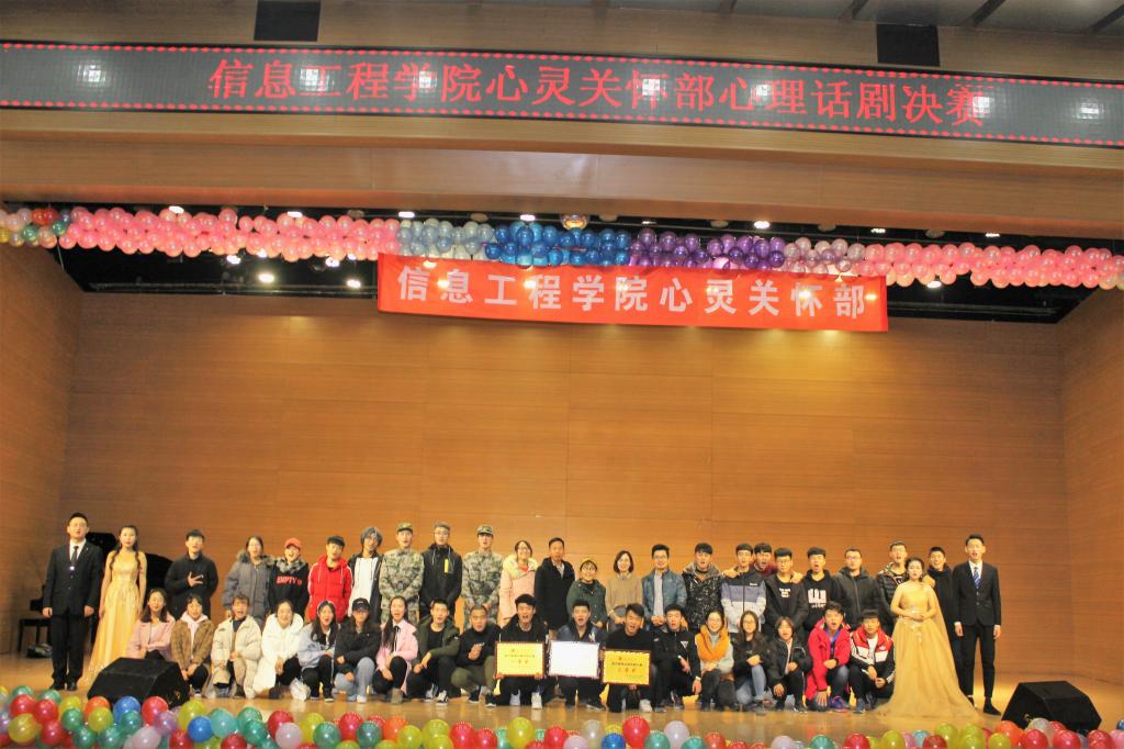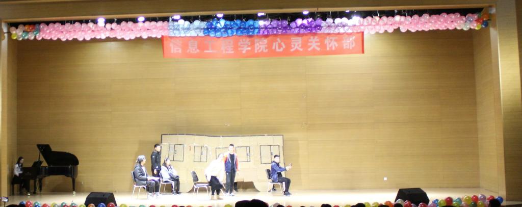 为活跃校园文化气氛,展现当代大学生积极向上的健康风貌,同时提高taptap学生综合素质和艺术修养,丰富课余文化生活,信息工程学院大学生自律委员会心灵关怀部于2018年11月29日晚7点,在我校音乐厅组织举办了"星光璀璨"心理话剧决赛,本次比赛由通信工程、测控技术与仪器、自动化和软件工程这四个专业进行比拼。本场比赛的评委由信息工程学院学工办各位老师、stage话剧社社长和腾飞艺术团团长组成。这是一场关于心灵的盛宴,信息工程学院全体大一同学观看了这场比赛。