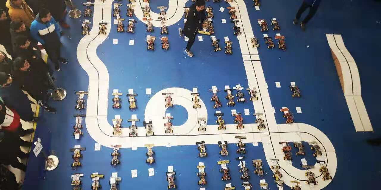 周日上午十点,决赛的号角打响!进入决赛的44支队伍早已蓄势待发。经过一晚上的通宵升级,各支队伍将小车速度调到极限,因为决赛竞争的是极致的速度,同学们摒弃保命的程序,将速度开到最大,来冲击比赛最终的1名一等、6名二等、13名三等。