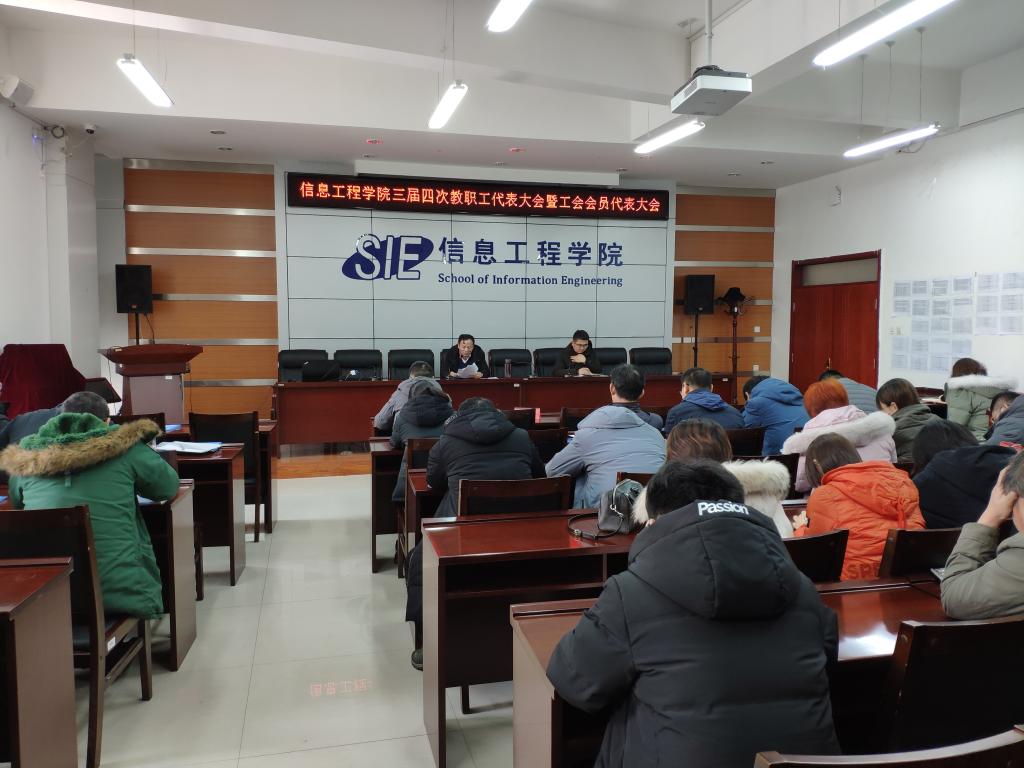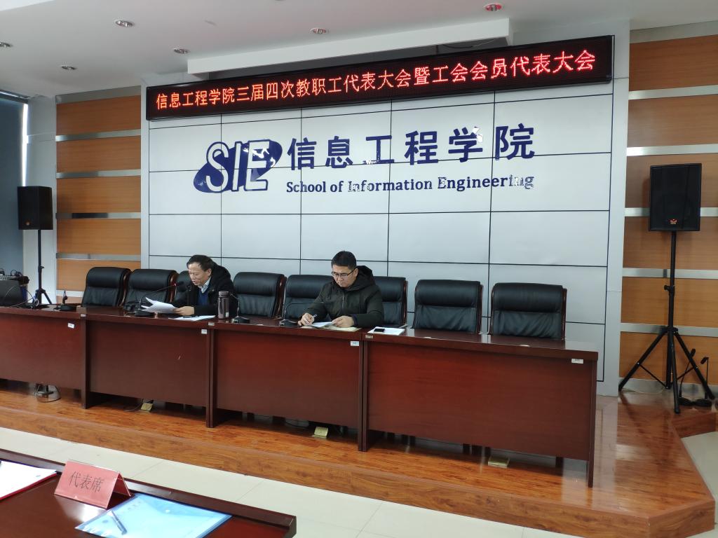 20191230日(周一)下午,在逸夫楼F302学院综合会议室,召开信息工程学院三届三次教职工代表大会暨工会会员代表大会,学院全体代表参加,非代表列席。院长李宝山做了“2019年院长工作报告”和“学院2019年财务情况报告”,学院财务报销明细向全体教职工公开,张贴在会议室墙上,学院工会主席段志峰做了“2019年学院工会工作报告”。李宝山院长对学院教工提案进行了答复,对信息工程学院2019年度业绩津贴分配办法(讨论稿)进行了说明。