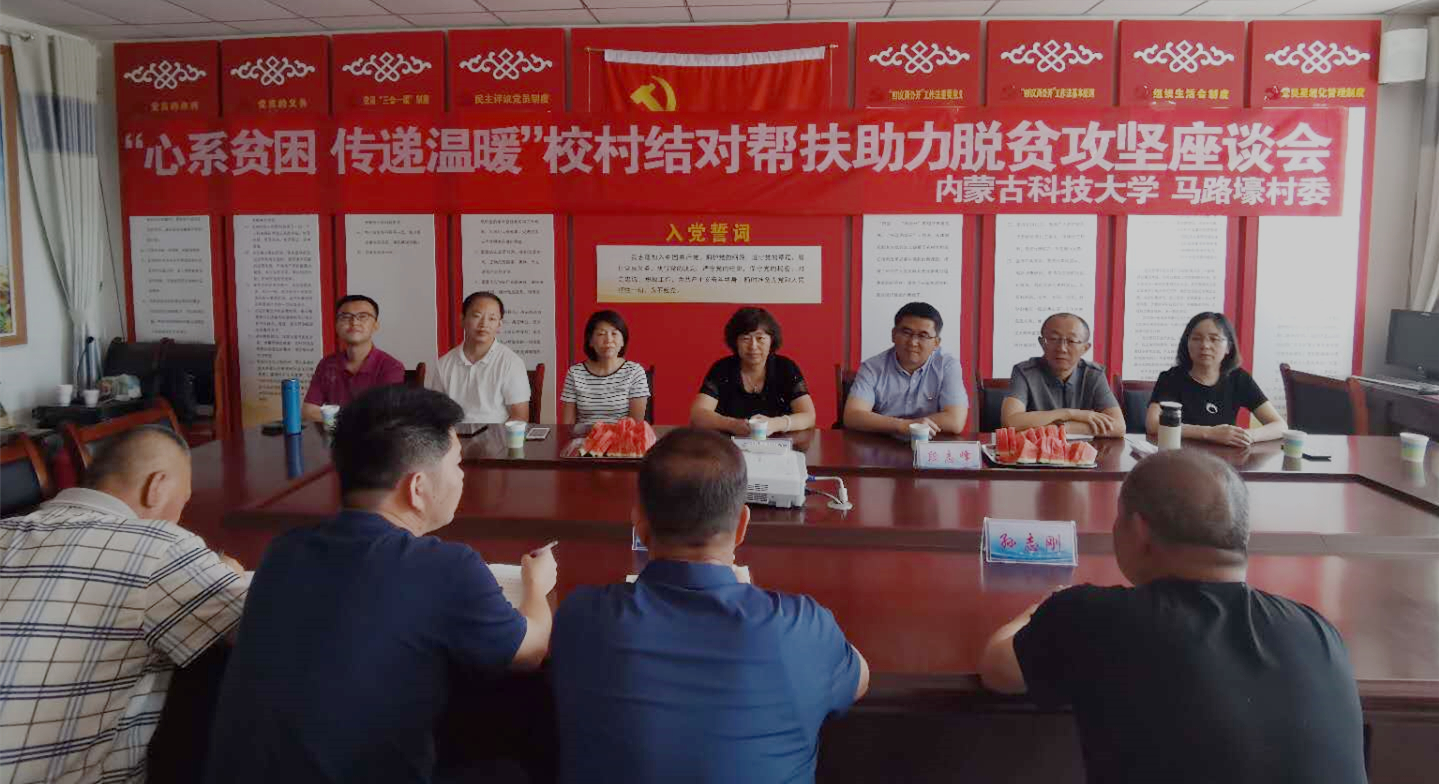7月13日清晨,taptap点点足彩信息工程学院党总支一行10人,来到taptap点点足彩定点帮扶村——固阳县金山镇马路壕村,开展“心系贫困 传递温暖”助力脱贫攻坚座谈会及走访慰问当地困难群众活动。