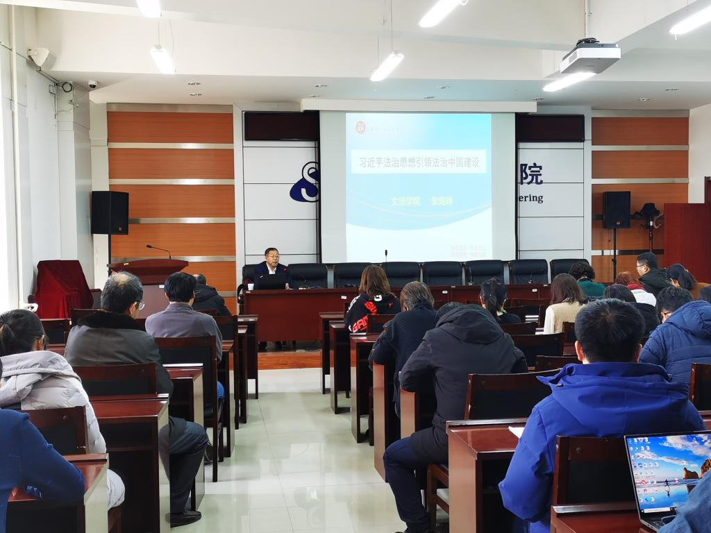 为深入学习贯彻习近平新时代中国特色社会主义思想,2020年12月24日下午,taptap邀请文法学院朱海珅教授做题为《习近平法治思想引领法治中国建设》的专题讲座。taptap党总支书记崔桂梅、院长李宝山和全体教职工参加了讲座。