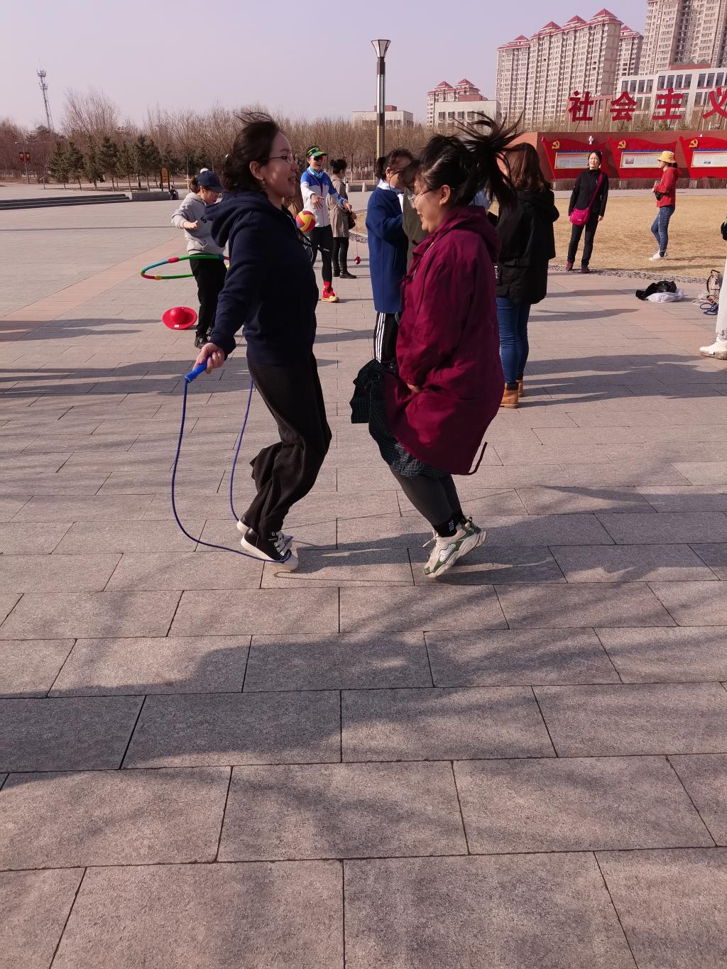 女教工首先参加了文体活动,有踢毽子、单人跳绳、多人跳绳、转呼啦圈、排球颠球等。在多人跳绳活动中,大家团结协作,摇绳的老师卖力的将绳子飞快地甩了起来,犹如条条彩龙在飞舞,“啪啪啪”绳子落地,尘地飞扬,‘呼呼呼“,耳边只听绳子甩动声,有的单脚跳,有的双脚跳,有的跑步似地跳,有的跳出了高难度的动作,真是让人眼花缭乱。女教工们舒展筋骨、各展所长,将文体活动推向了一个小高潮。