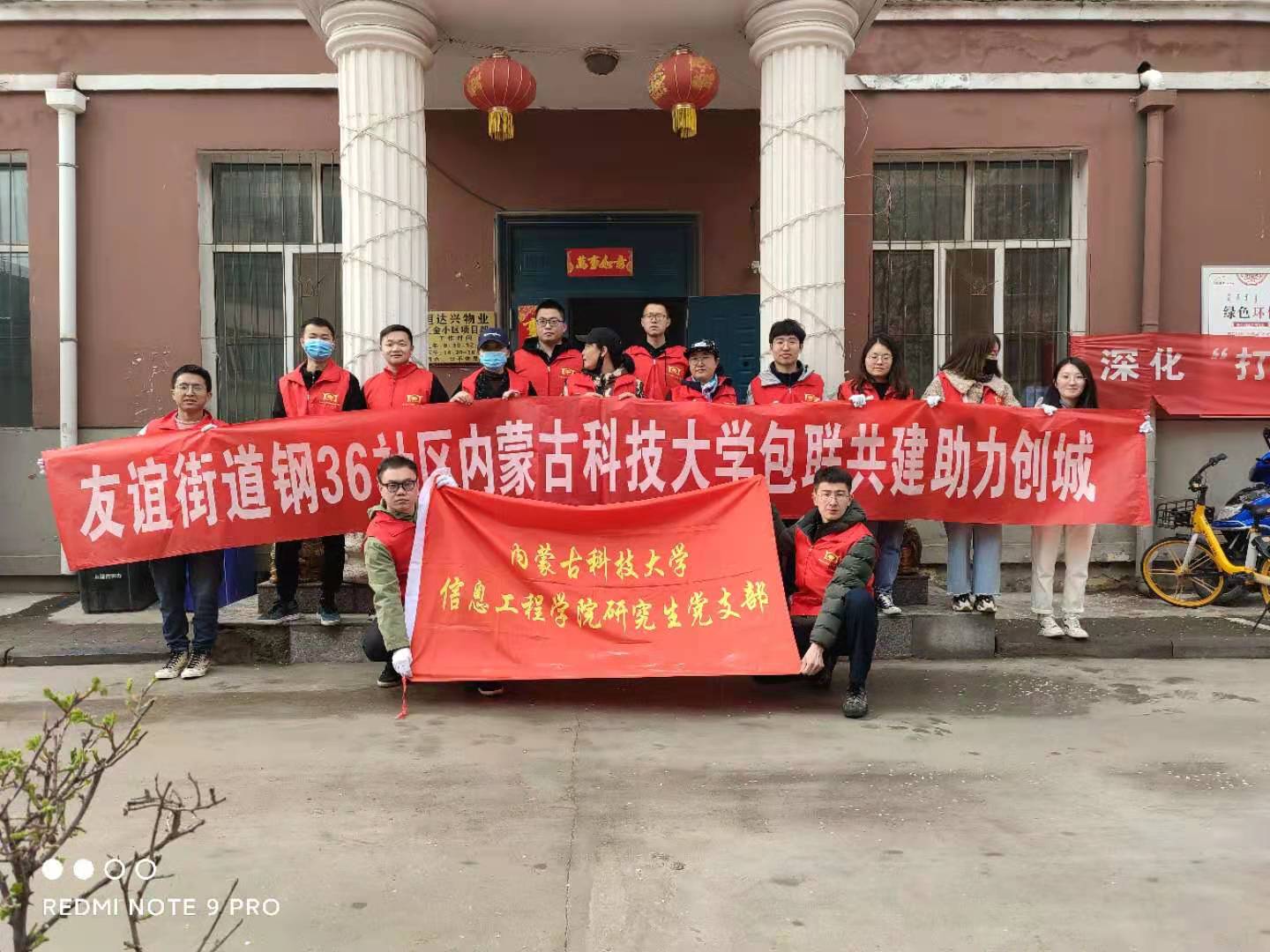 信息工程学院党员、团员志愿者积极响应创建文明城市号召,走进钢36社区各个楼宇,整理路边停放车辆的摆放,清理路边杂物,以实际行动倡导文明、践行文明,为包头市争创全国文明城市贡献力量,展现出当代大学生的精神风貌,受到社区党委的高度赞扬。