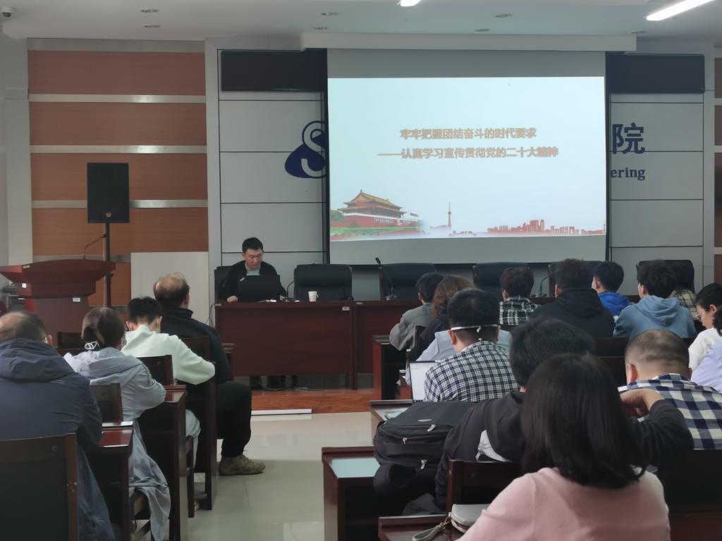 会上,杨哲副教授以“团结奋斗”为导引,从“团结奋斗是中国人民创造历史伟业的必由之路”、“团结奋斗是党领导人民奋进新征程的必然要求”、“广泛汇聚团结奋斗的磅礴伟力”三个方面,全面、深入的解读党的二十大精神。杨哲副教授指出:“力量生于团结,幸福源自奋斗。一百多年来,不管形势和任务如何变化,中国共产党始终依靠团结奋斗,团结一切可以团结的力量,为实现中华民族伟大复兴英勇拼搏”。