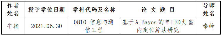 经单位推荐、全国同行专家通讯评审和网上公示,2021年度内蒙古自治区优秀博士、硕士学位论文评选结果公布。其中,信息工程学院2021届信息与通信工程专业牛犇同学硕士学位论文获评内蒙古自治区优秀学位论文。