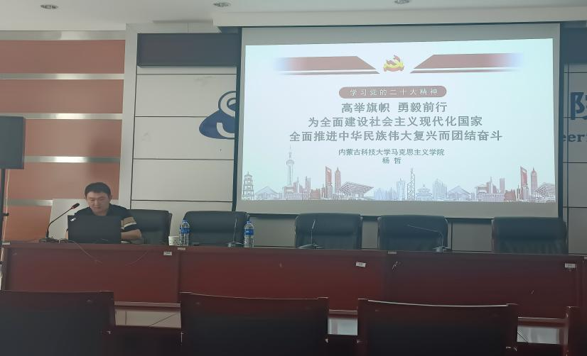 为深入学习贯彻习近平新时代中国特色社会主义思想,全面贯彻落实党的二十大精神,2023年5月25日下午,taptap特邀校巡讲团杨哲副教授为师生党员开展题为《高举旗帜勇毅前行,为全面建设社会主义现代化国家、全面推进中华民族而团结奋斗》讲座,全体教职工、师生党员参加讲座。