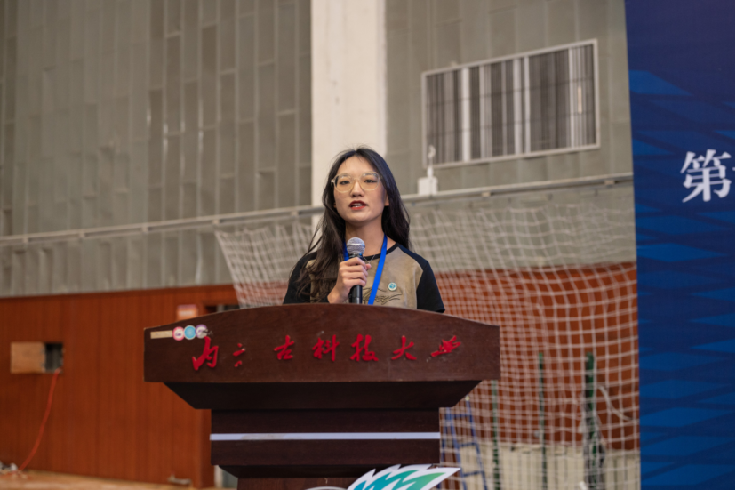 开幕式第二项,由内蒙古民族大学王蓉同学代表参赛选手发言。针对比赛来说,程序稳定性第一,切不能眼高手低。针对个人来说,自己所负责的任务,一定要有责任感,个人要有奉献精神,要有责任感!认真做好比赛的每一个环节。