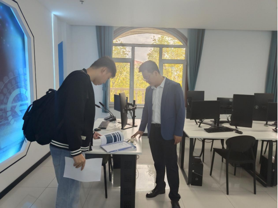在济南期间,王红霞和刘麒老师首先在企业负责人张侪的带领下,参观了双元教育的AR实验室、网络安全实验室、考研考公自习室等,了解了企业的业务领域、发展状况以及在人才培养方面的能力。