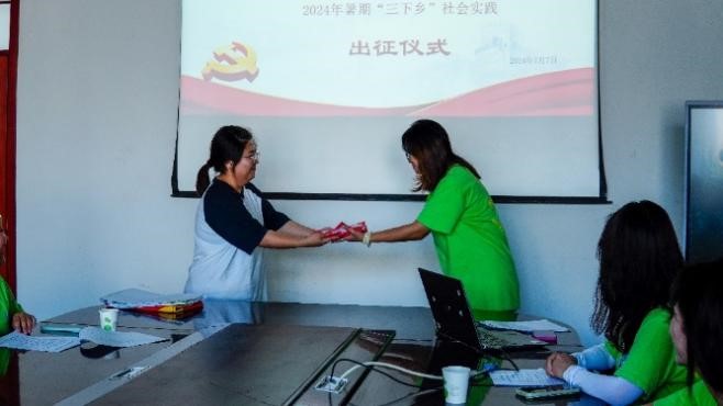 王红霞介绍了本次“三下乡”的基本情况。学院自启动暑期“三下乡”社会实践活动以来,经过广泛发动、层层遴选,选拔出13名优秀青年学生参加本次为期7天的社会实践。实践活动围绕乡村振兴和“两山”理论与实践,内容丰富且系统性极强;杜贝贝结合“青春为中国式现代化挺膺担当”主题作了动员讲话,对全体志愿者提出三点要求:一要明确活动目的,珍惜实践机遇,敢于迎接挑战、克服困难。二要结合地方需求,发挥专业优势,践行青春使命。三要强化安全意识、团队意识和纪律意识,确保活动取得实效;杨丹红代表此次社会实践学生代表发言,承诺taptap点点足彩青年们必将坚定不怕苦不怕累的信念,牢记使命,奋勇向前,在实践服务中贡献青春力量。