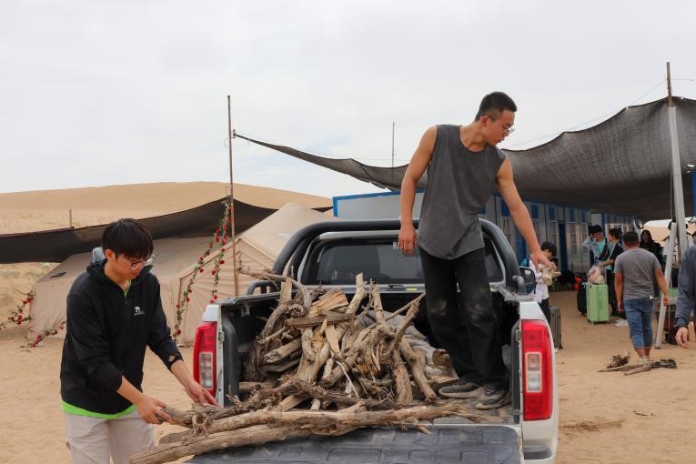 在浩瀚无垠的沙漠中,自然资源的稀缺让每一份能源都显得尤为珍贵。柴火,这一看似平凡的东西,在这里却成为了维系日常生活的重要能源。为了维持日常做饭的必须,午饭前一队志愿者们去沙漠和村里去捡柴火。