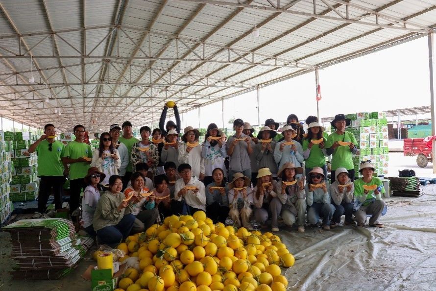基地负责人仲麟带领“小青柠”们和中国药科大学、兰州大学、兰州交通大学的同学们共同参观了民勤蜜瓜收购基地。这里不仅是甜蜜与丰收的交汇点,更是现代农业与市场对接的前沿阵地。一踏入基地,映入眼帘的便是繁忙而有序的景象。工人们正忙碌地挑选、分级、打包着刚从田间采摘回来的蜜瓜,每一颗都经过精心挑选,确保品质上乘。同学们被这种热火朝天的氛围深深感染,纷纷上前围观学习,近距离感受农产品从田间到市场的转变过程。
