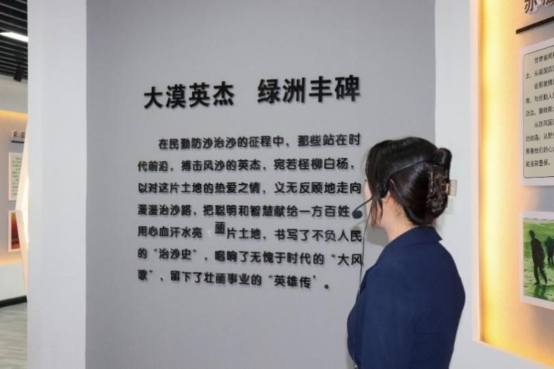 实践队员来到了民勤防风治沙纪念馆。在这里,我们仿佛穿越回了那些与风沙抗争的岁月,亲眼见证了治沙人民不屈不挠的精神和坚韧不拔的意志。纪念馆内的每一幅图片、每一件展品都仿佛在诉说着一个个感人至深的故事,让志愿者们深受震撼和感动。