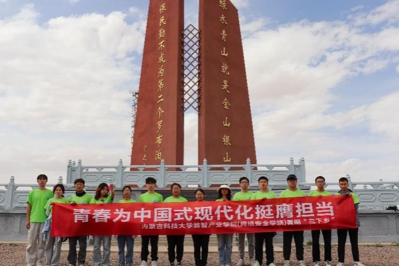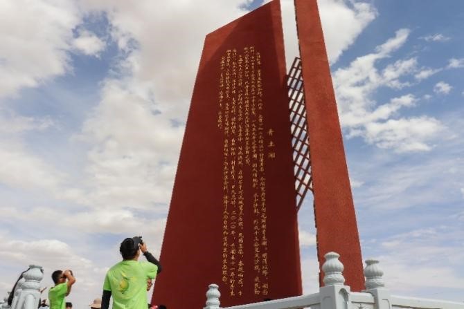 实践队员参观民勤防沙治沙纪念碑。当“绿水青山就是金山银山,确保民勤不成为第二个罗布泊”纪念碑出现在眼前,同学们无不被这庄严肃穆的氛围深深感染。这座纪念碑不仅承载着习近平总书记对过往民勤生态治理成就的肯定,更寄托了习近平总书记对未来绿色发展的美好愿景。