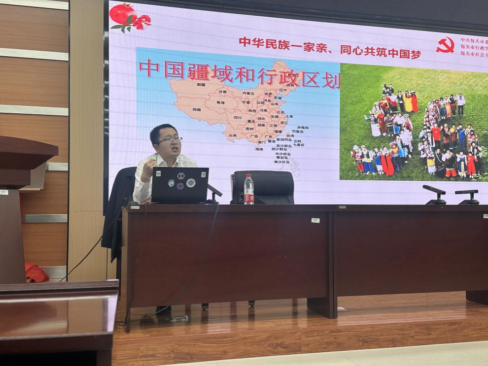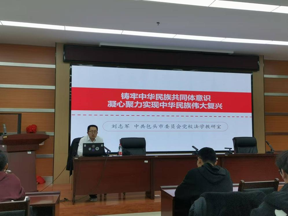 2024年12月5日晚7点,taptap竞彩足球党委在逸夫楼F302举办主题为“铸牢中华民族共同体意识 凝心聚力实现中华民族伟大复兴”的精彩讲座。本次讲座特邀中共包头市委员会党校法学教研室的刘志军教授主讲,党员、入党积极分子以及青马班学员共计100余人参加。