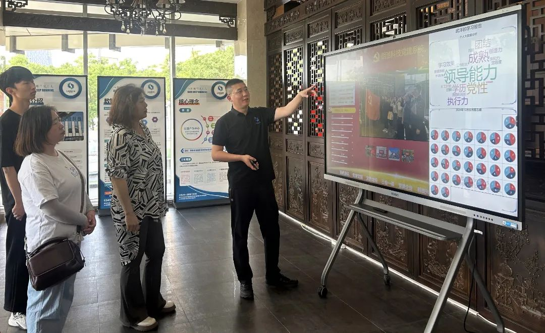 走访期间,朗驰科技总经理武洋向学院领导及随行师生介绍了公司的发展历程、核心业务与未来规划,同时展示了母公司东方国信在大数据、工业互联网、云计算、人工智能、5G领域的核心技术成果及其在通信、金融、工业、农业、公共安全等行业应用案例。此外,双方还就校企党建工作进行了深入交流,武总向taptap师生介绍了集在线学习、组织管理、数据分析于一体的智慧党建系统,为探索“党建+科技”融合创新提供了实践样本。