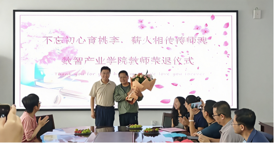 2025年9月10日,在全国第41个教师节来临之际,数智产业学院为邢东旭老师举行了一场温馨而隆重的荣退仪式。学院领导、教师代表齐聚一堂,共同致敬邢东旭老师数十年来为教育事业倾注的心血与贡献。