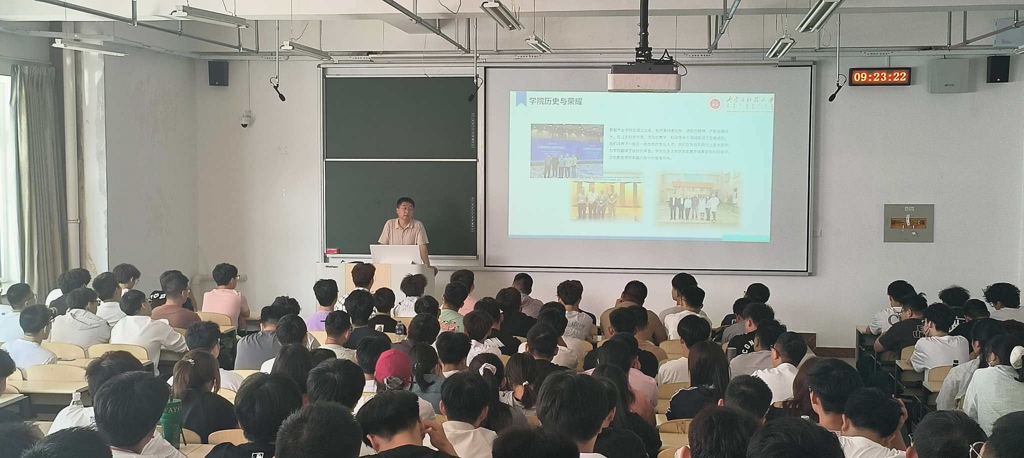 9月10日上午,王静宇书记讲授主题为“奋发有为勇担当”的“开学第一课”,全面开展理想信念教育、区情市情、校情校史教育,深入解读习近平总书记在党的二十大报告中的青年寄语,号召青年大学生要积极响应总书记的殷切期望,坚定理想信念,争做有理想、敢担当、能吃苦、肯奋斗的新时代好青年。通过励志故事讲述经验分享不断激励学子们提升自身能力和素质,持续为学院全方位建设及高质量发展添砖加瓦,贡献青春力量。