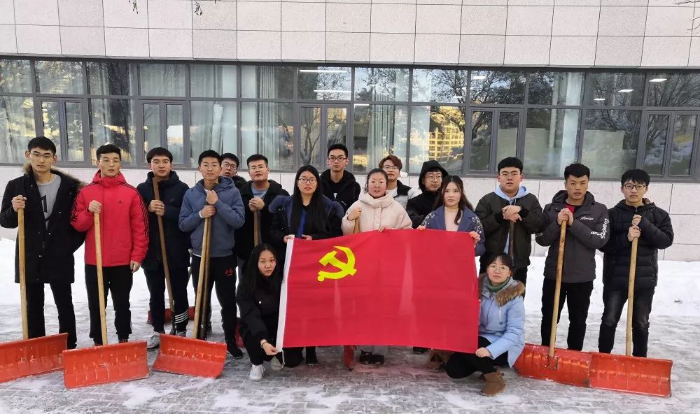同学们不畏严寒,积极主动,挥舞着铁锹,你铲我扫,一派热火朝天的景象,一点点地将积雪铲起集中堆放。大家在欢声笑语中扫出了干净的人行道。虽然他们的脸和手冻得通红,但这一切丝毫没有影响他们劳动的热情。此次活动我支部成员发扬了吃苦耐劳,顽强拼搏的战斗精神和团结协作的集体主义。他们以身作则,全心全意为人民服务,为同学们树立了良好的榜样。