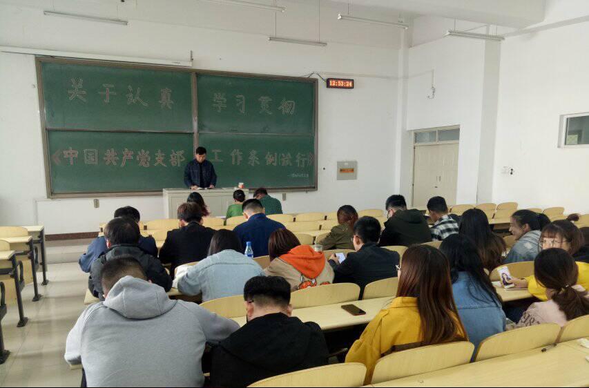 2019年4月11日12:40,计算机学生党支部开展了以“关于认真学习贯彻《中国共产党支部工作条例(试行)》”为主题的党支部组织生活大会。参加此次党课的有计算机党支部全体党员。《中国共产党支部工作条例(试行)》是为了坚持和加强党的全面领导,弘扬“支部建在连上”的光荣传统,落实党要管党、全面从严治党要求,全面提升党支部组织力,强化党支部政治功能,充分发挥党支部战斗堡垒作用,巩固党长期执政的组织基础,根据《中国共产党章程》和有关党内法规制定的条例。大会过程中,党员同志们谈到,党支部是党的基础组织,是党在社会基层组织中的战斗堡垒,是党的全部工作和战斗力的基础,必须贯彻落实新时代党的组织路线,把党支部建设放在更加突出的位置,加强党支部标准化、规范化建设,不断提高党支部建设质量。的确,支部的建设不仅要遵循条例中的原则、明确工作机制设计、确保组织生活的开展,更要把学习宣传、贯彻落实《条例》作为党组织的重要任务。切实把抓好党支部作为党的组织体系建设的基本内容、管党治党的基本任务、检验党建工作成效的基本标准,采取有力措施,推动《条例》落到实处、见到实效。