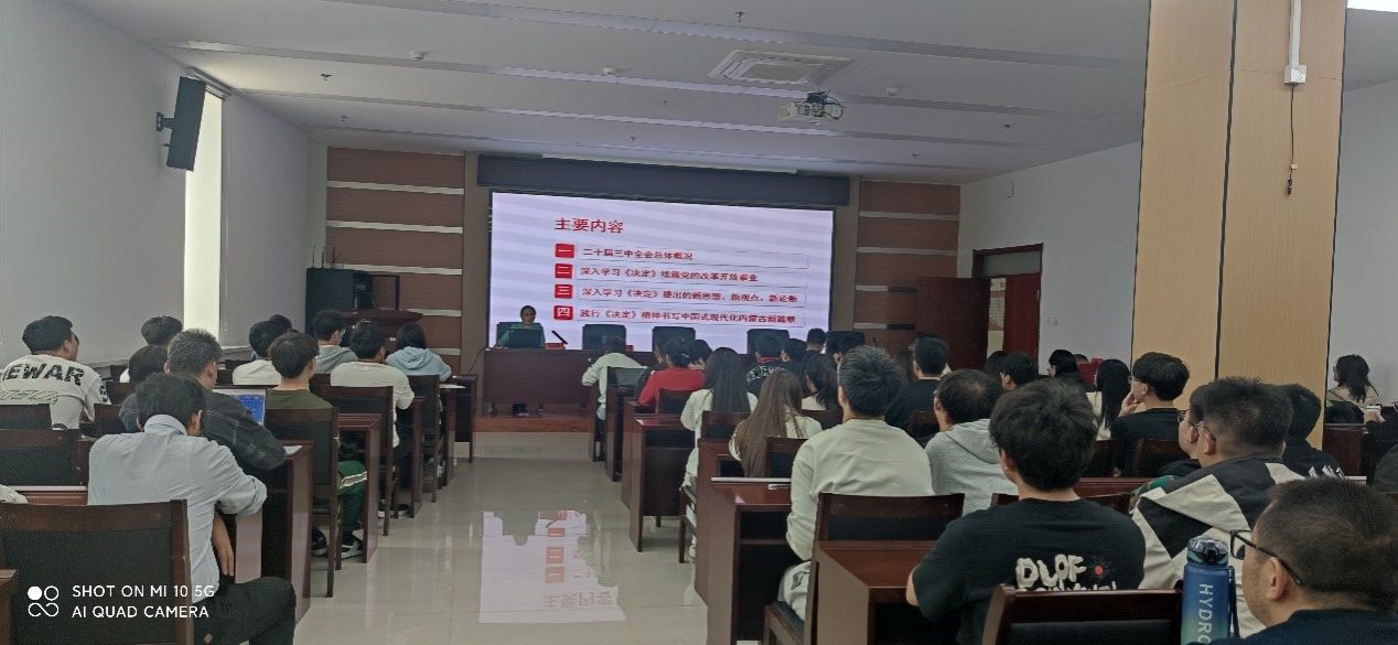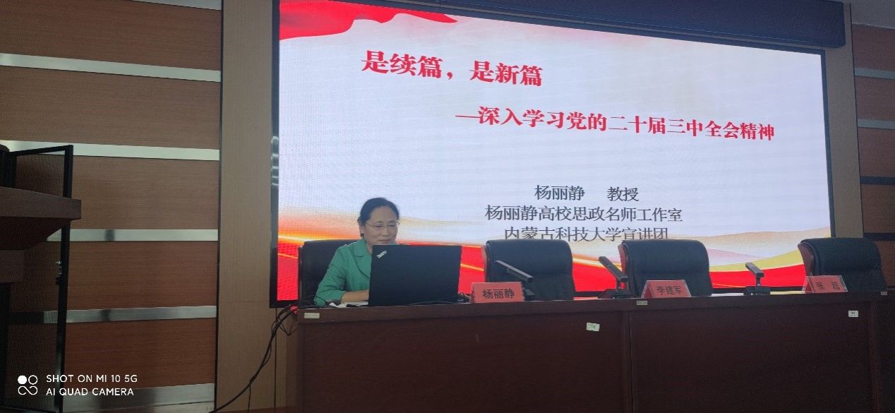 杨丽静教授从二十届三中全会总体概况、深入学习《决定》续篇党的改革开放事业、深入学习《决定》提出的新思想、新观点、新论断、践行《决定》精神书写中国式现代化内蒙古新篇章四个方面对二十届三中全会进行讲解,从理论高度和实践深度出发,引导广大教工和学生党员全面把握会议精神的实质和内涵,明确未来的发展方向和目标。