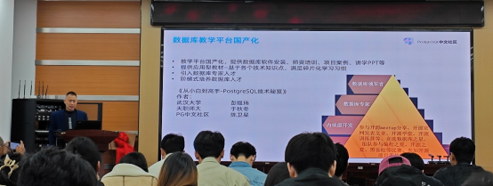 为深入贯彻国家信息技术应用创新发展战略,推进数据库教学平台国产化建设,提升学院师生在信息技术应用创新领域的专业素养与实践能力,10月11日上午,学院特邀PostgreSQL中文社区核心成员陈卫星老师,于逸夫楼F302会议室作了题为《数据库教学平台国产化实施方案》的专题讲座。本次讲座由教学办主任丁雨老师主持,学院相关研究生代表参与了此次学术交流活动。