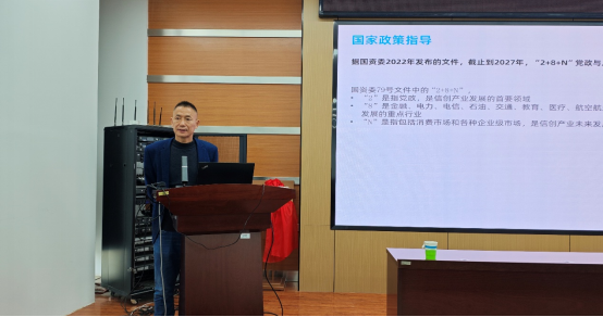 于国家政策指导板块,陈老师介绍,2022年,国务院国有资产监督管理委员会发布79号文,明晰信创产业(信息技术应用创新)的国产化替代时间安排与路线规划,提出“2 + 8 + N”信创推进路线图的三步走战略,要求在2027年底前全面达成国产化替代。